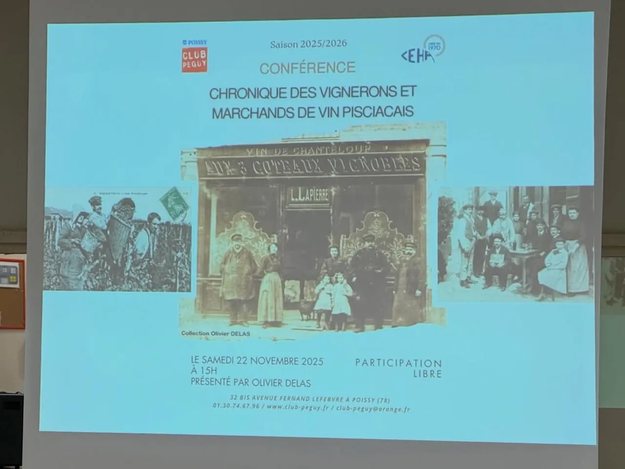 Ce samedi après-midi, j’ai eu le plaisir d’assister à la chronique des vignerons et marchands de vins pisciacais au club Péguy à Poissy.